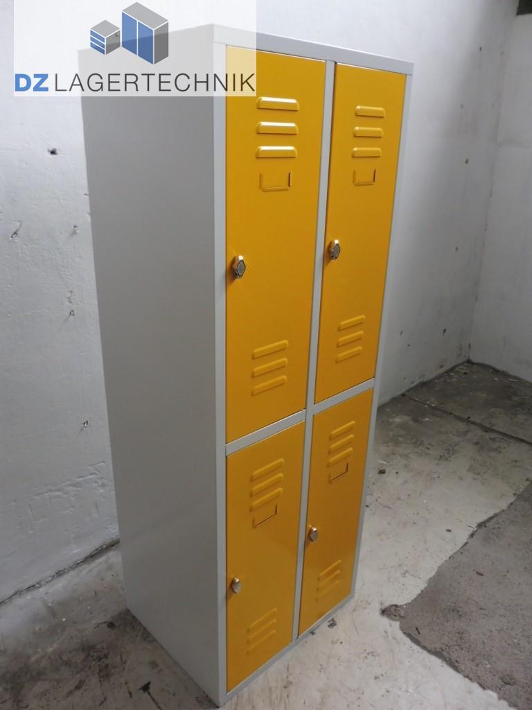 Dank seiner robusten Bauart ist der Schrank aus Metall optimal für Umkleiden in Betrieben, Garagen oder Sportanlagen geeignet. Der Schließfachschrank besteht aus 4 Abteilen mit Flügeltüren.