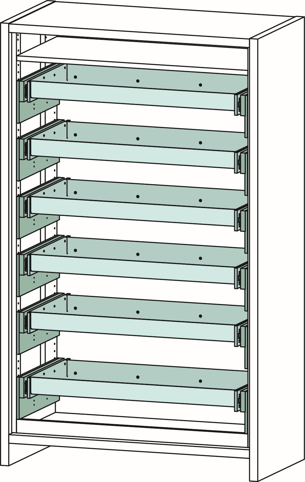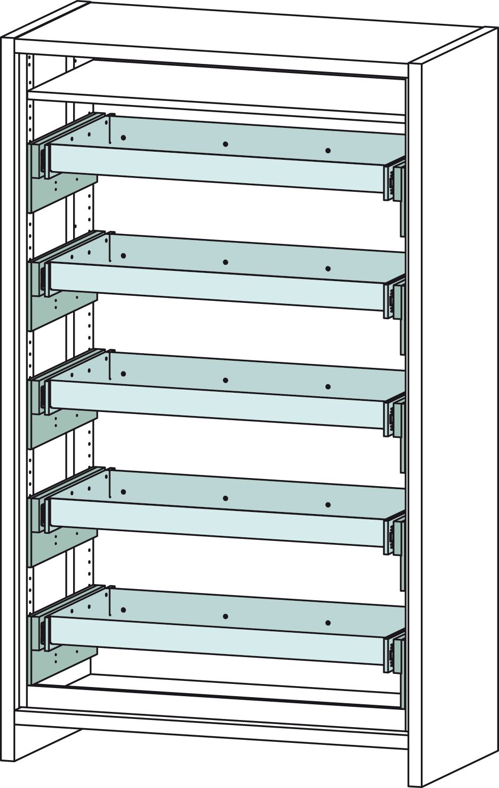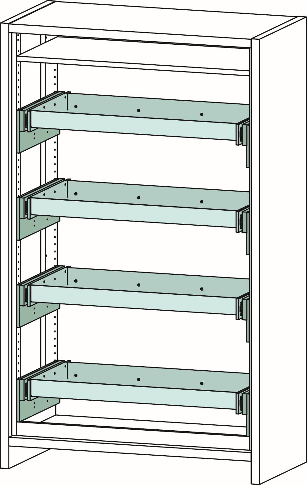 Ausstattung: Türschließer, Feststellanlage, Vollauszüge, Tragkraft 75 kg