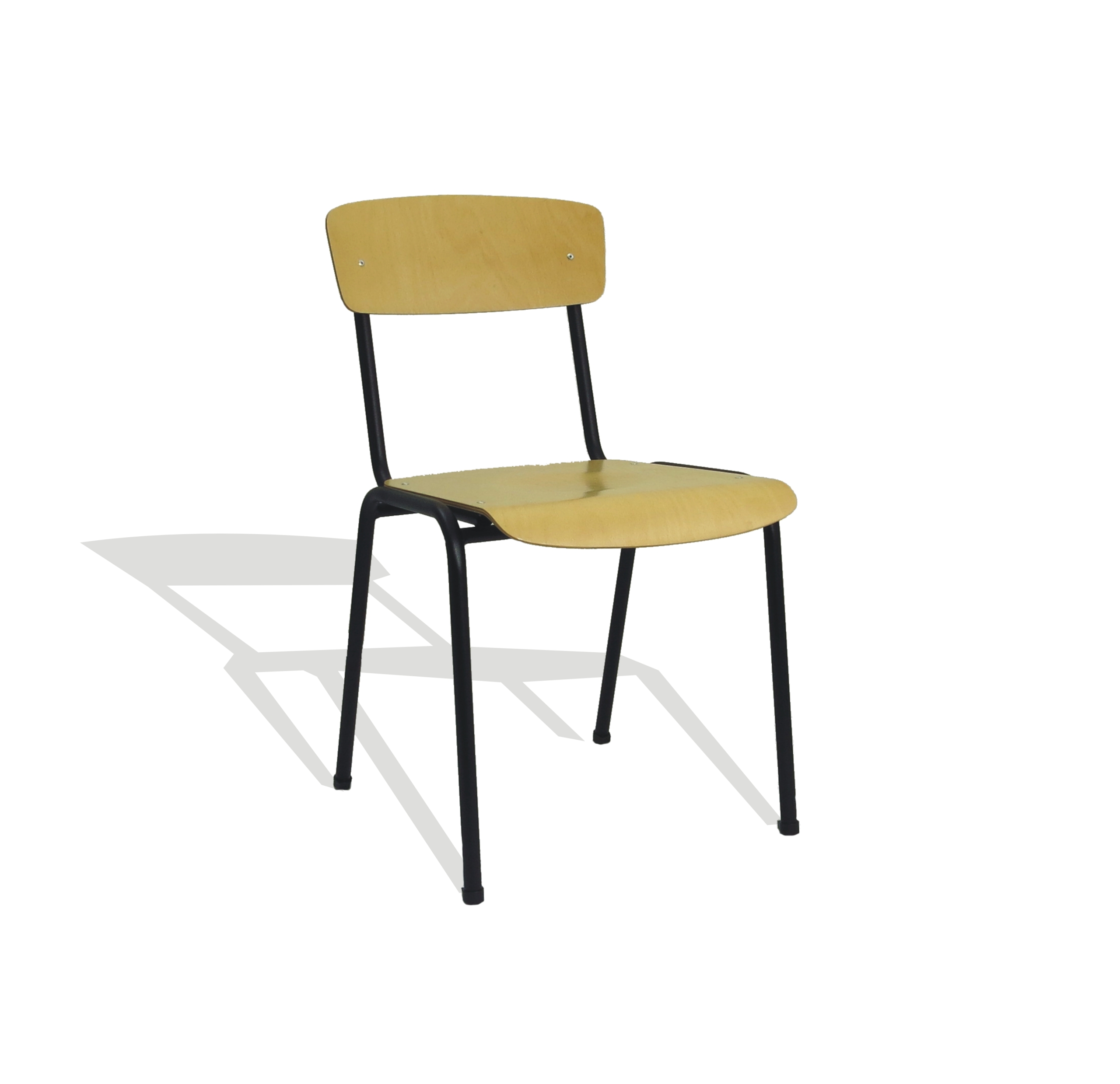 Beistellstuhl mit Sitzfläche und Lehne aus Holz und schwarzem Gestell
